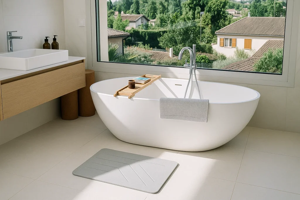 Le tapis en diatomite DIATOM offre une absorption instantanée, un séchage ultra rapide et une hygiène incomparable. Conçu à partir d’un minéral naturel hautement absorbant, il empêche l’humidité de stagner et réduit les risques de glissade. Minimaliste, durable et élégant, il transforme chaque sortie de bain en une expérience propre, confortable et sécurisée.